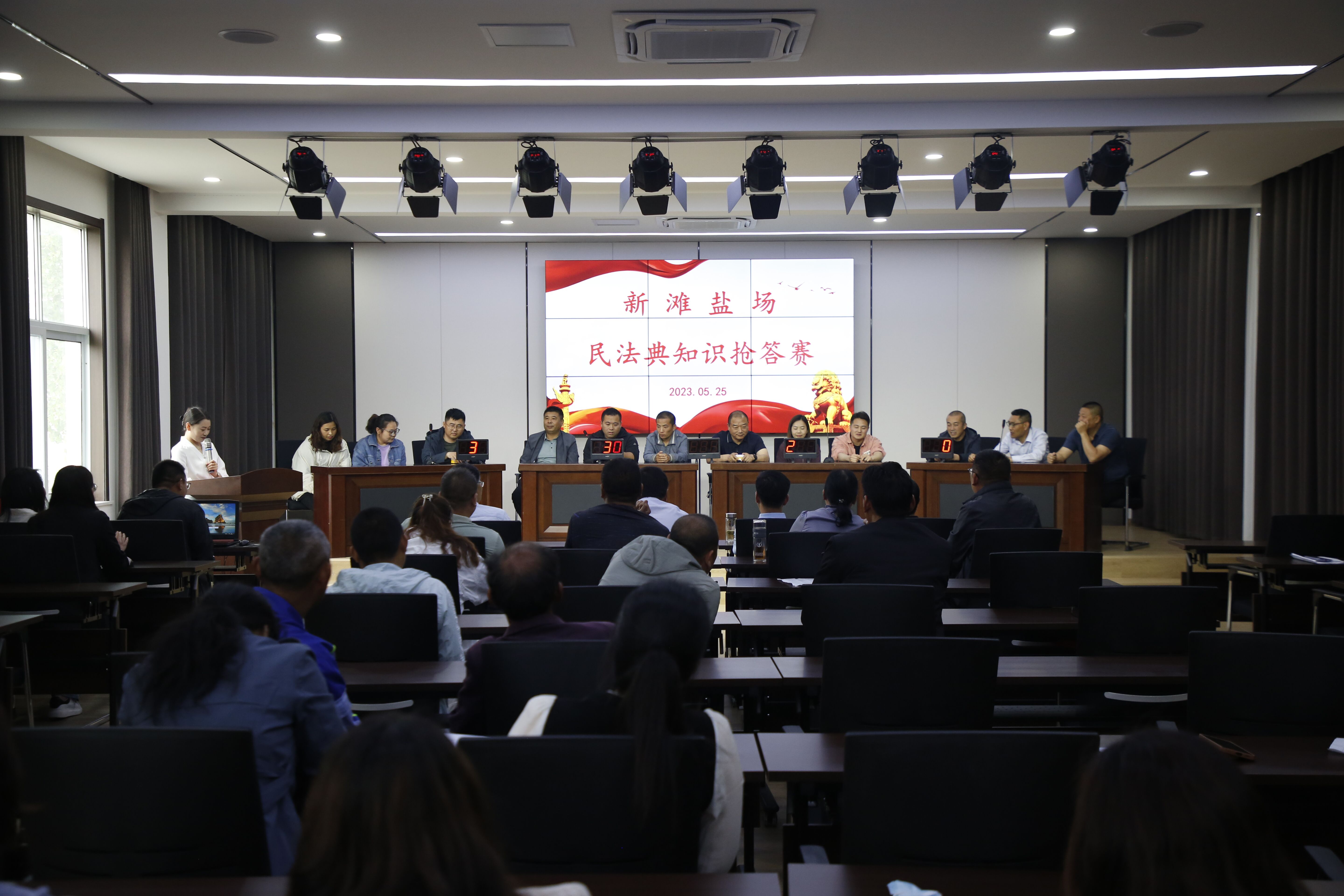 法治興則國(guó)興,法治強(qiáng)則國(guó)強(qiáng)。為全面貫徹落實(shí)黨的二十大精神,深入學(xué)習(xí)貫徹習(xí)近平法治思想,進(jìn)一步加強(qiáng)民法典宣傳教育工作,積極營(yíng)造尊法學(xué)法守法用法的良好氛圍,按照集團(tuán)《關(guān)于組織開展“民法典宣傳月”活動(dòng)的通知》要求,5月25日下午,新灘鹽場(chǎng)開展民法典知識(shí)搶答賽。2023-05-26 -